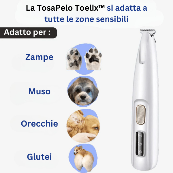 Infezioni dolorose, fastidi e poca energia: il pelo in eccesso sotto le zampe spesso passa inosservato, ma può causare disagi e problemi di salute. Toelix™ rimuove il 98% del pelo superfluo in soli 5 minuti, mantenendo le zampe del tuo cane pulite, sane e libere da irritazioni. Niente più sofferenza silenziosa, niente più costose visite dal toelettatore—solo un cane più felice, sano ed energico ogni giorno.