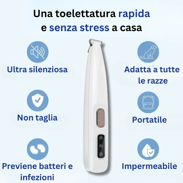 - Sicurezza e comfort: Le sue lame delicate e la tecnologia silenziosa garantiscono un taglio preciso senza irritazioni, riducendo al minimo lo stress del tuo cane.